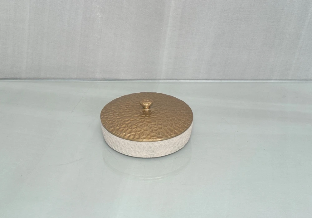 קןפסא עגולה ת בראס לבן זהב 20*20 ס"ם